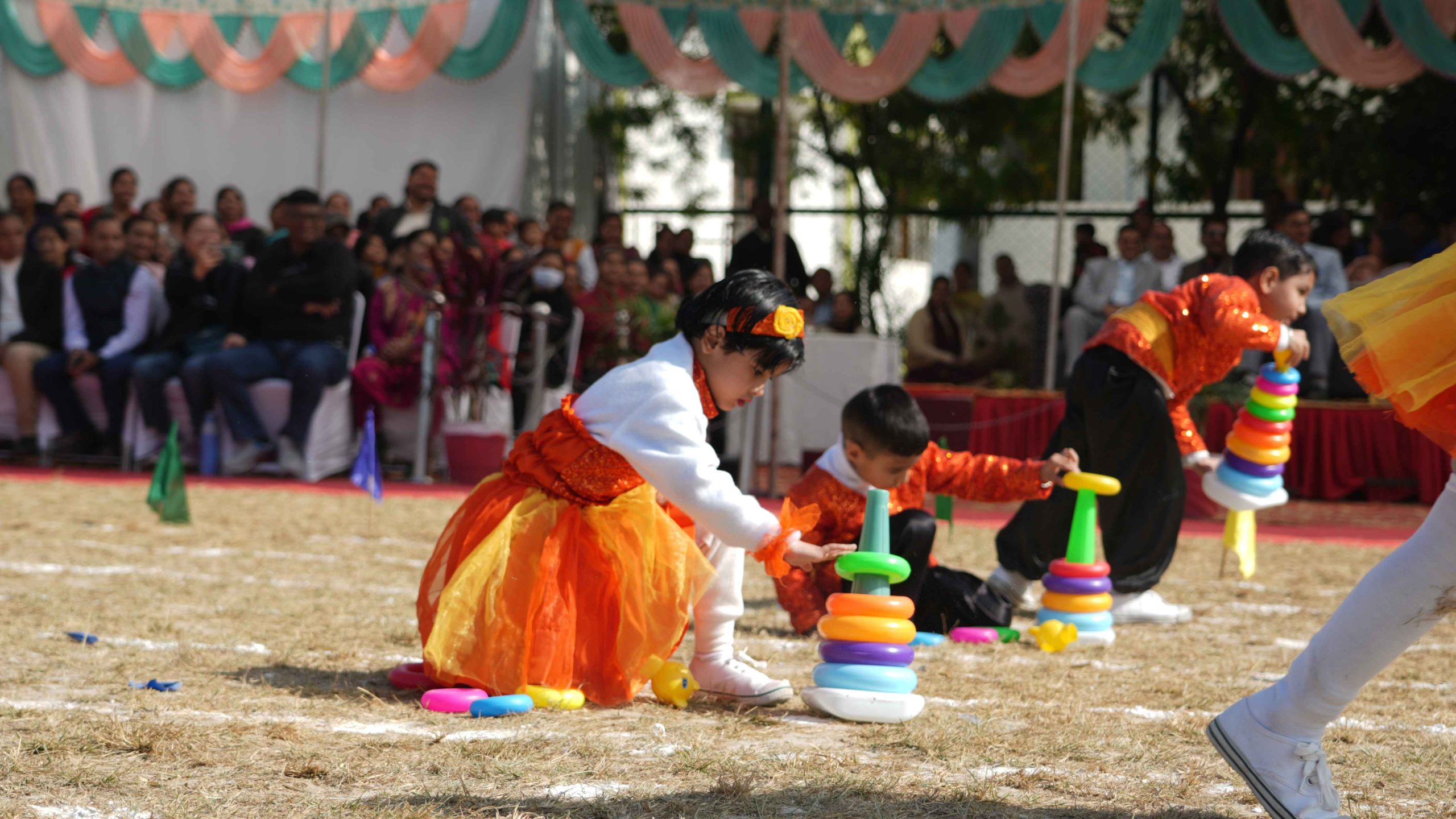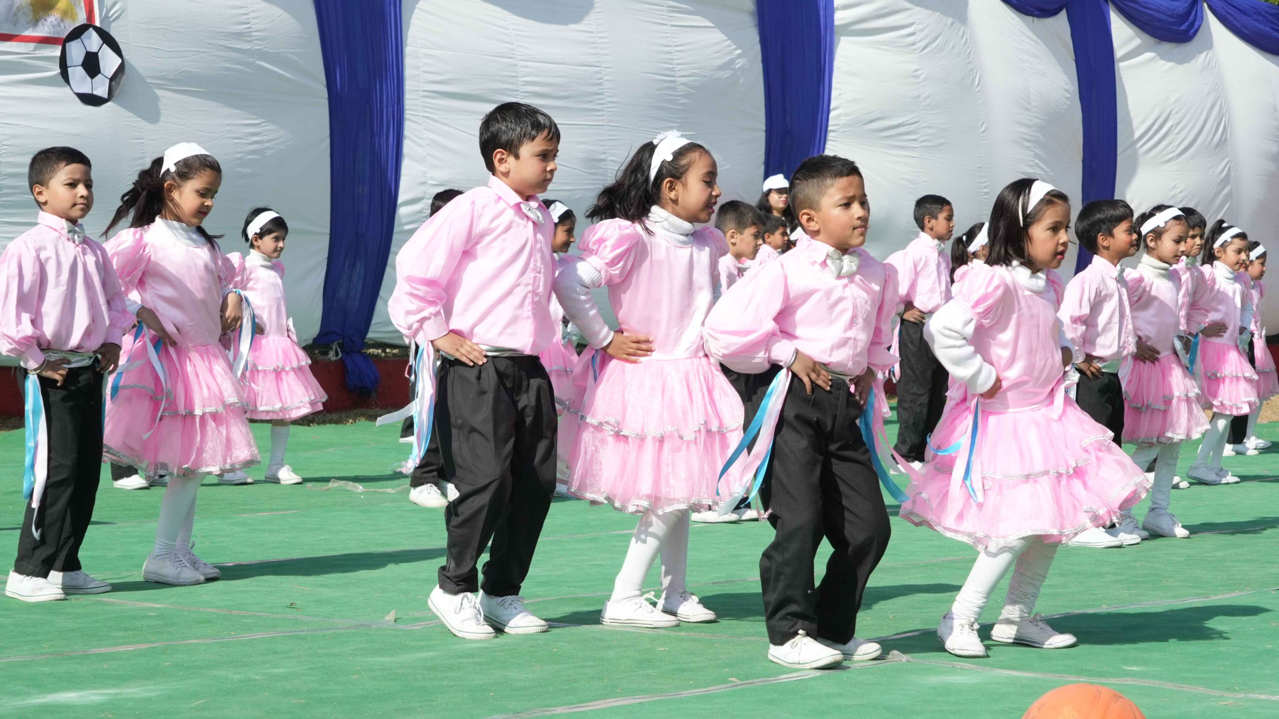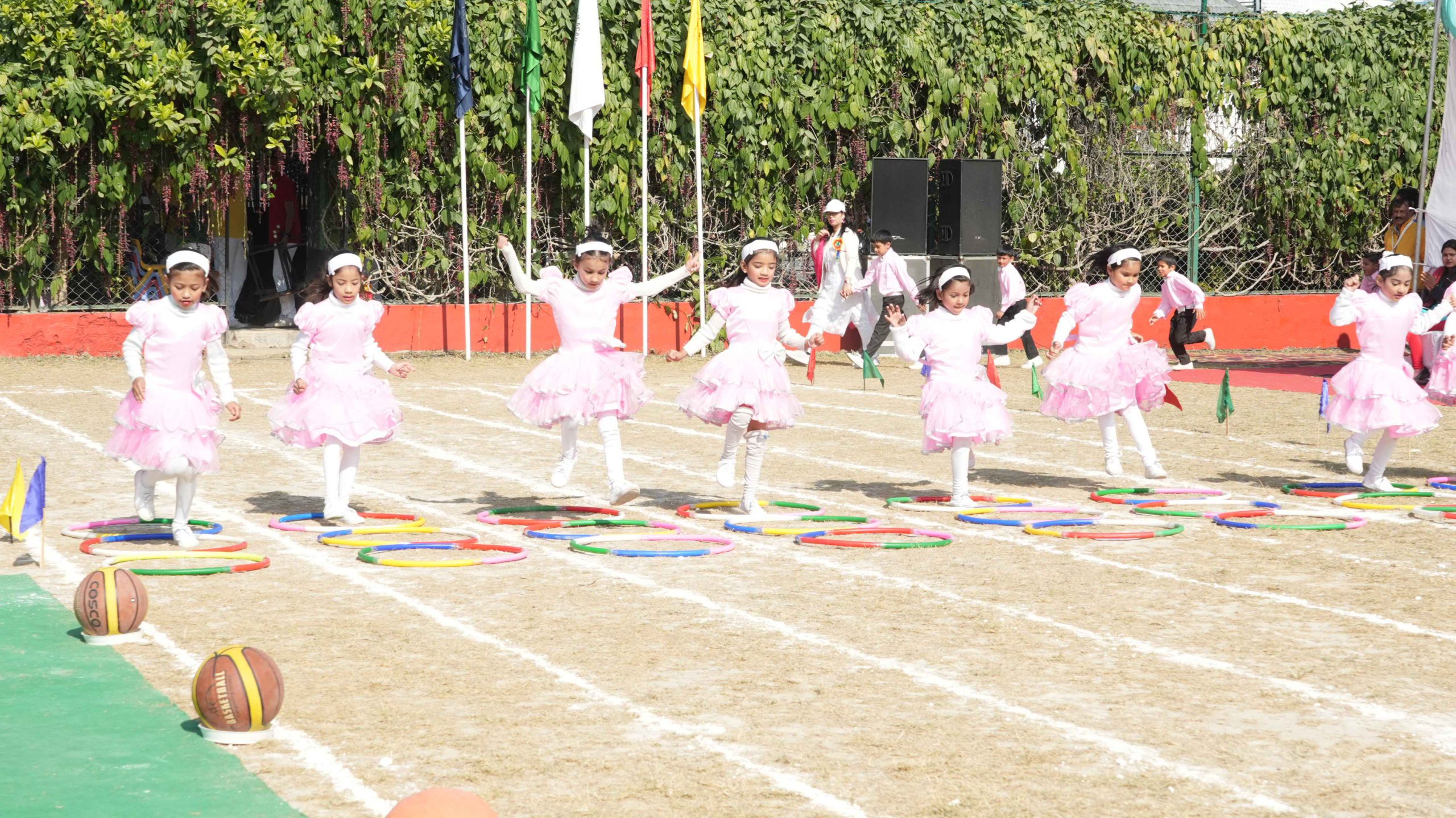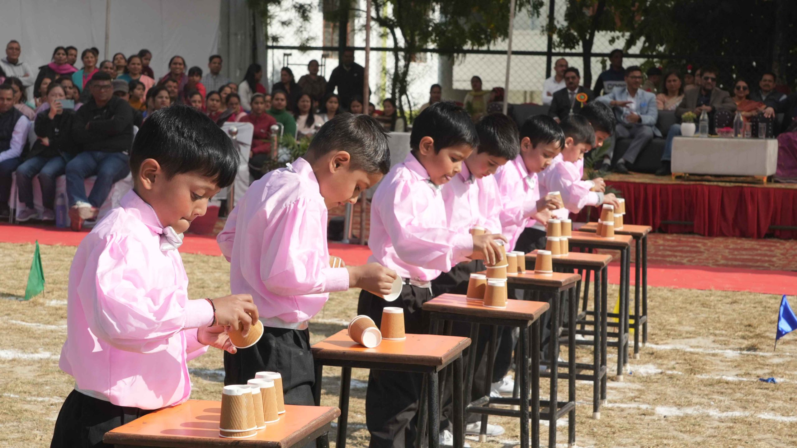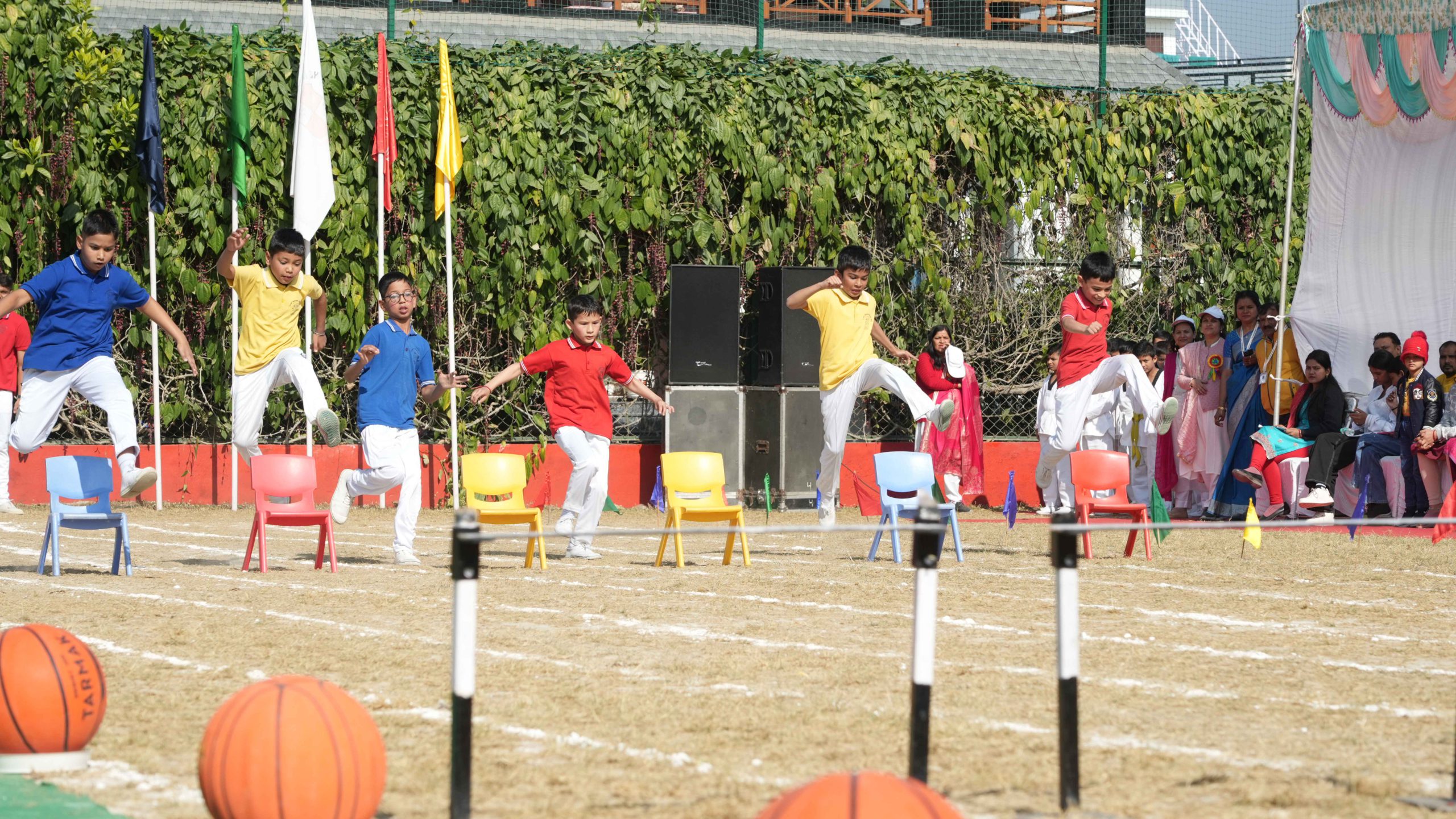 Students of the Junior Wing presented a series of energetic and colourful performances, including the Welcome Dance, Sports Dance, Rhyme Medley, Zumba, Yoga Demonstration, Dumbbell Drill, Hula-Hoop Drill, and a graceful Closing Dance by Class VI.