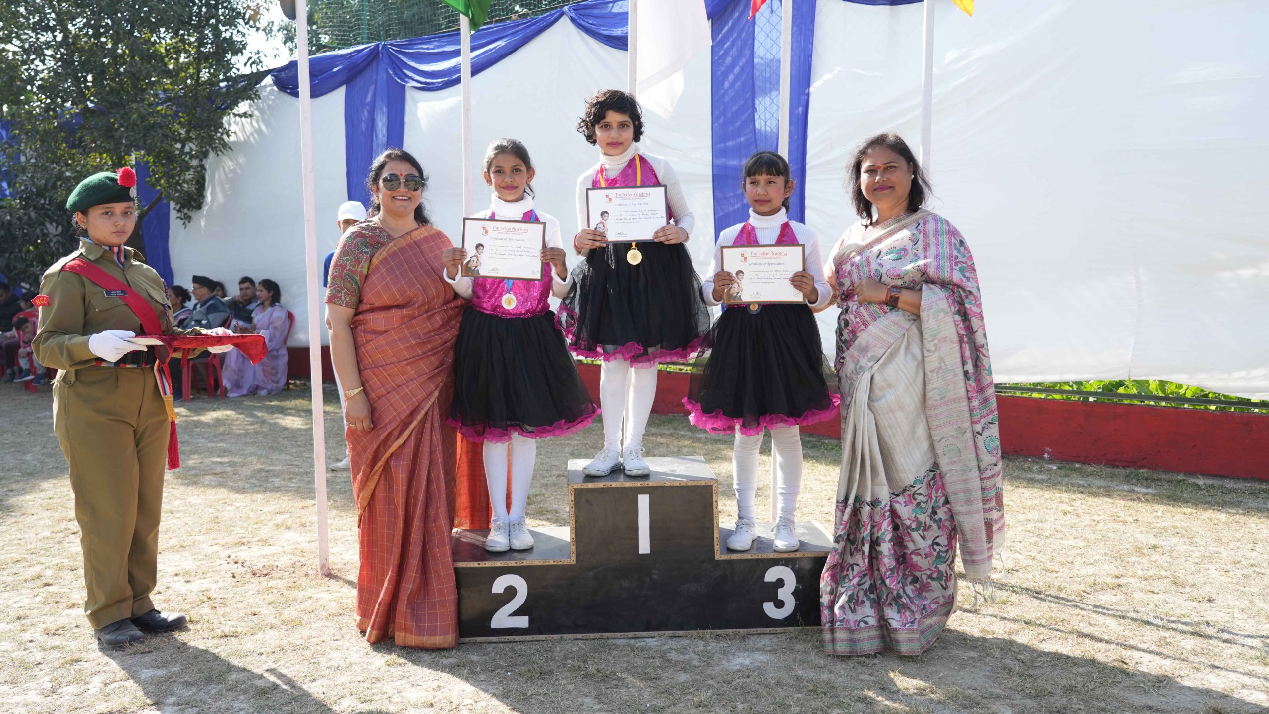 The school also honoured its staff with 10-Year Service Awards presented to Ms. Nirmala Sharma, Ms. Seema Khattri, and Ms. Vinita Chettri. The Teacher of the Year Award (Junior Wing) was conferred upon Ms. Rekha Badoni.