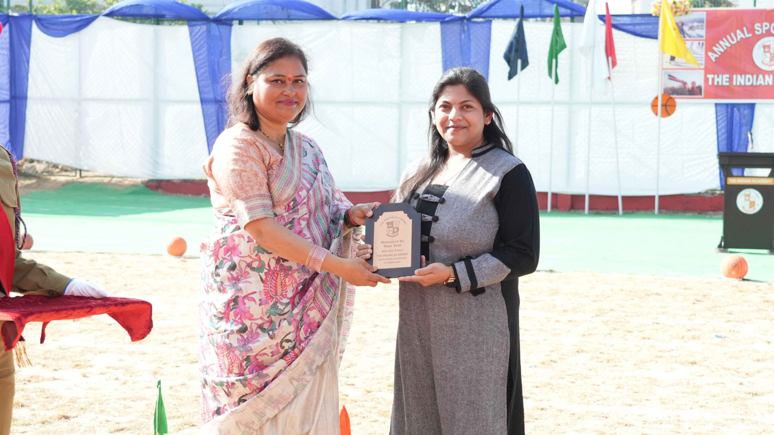 Tagore House, led by Ms. Saumya Saxena, proudly lifted the Best House Trophy. An Appreciation Award was presented to Ms. Asha Bhatt, while the Teacher of the Year Award (Senior Wing) was awarded to Ms. Leena Gupta.