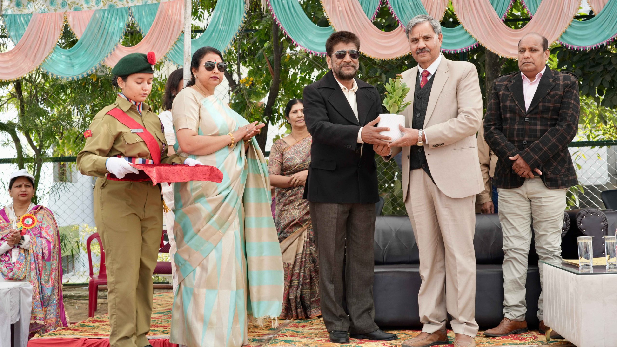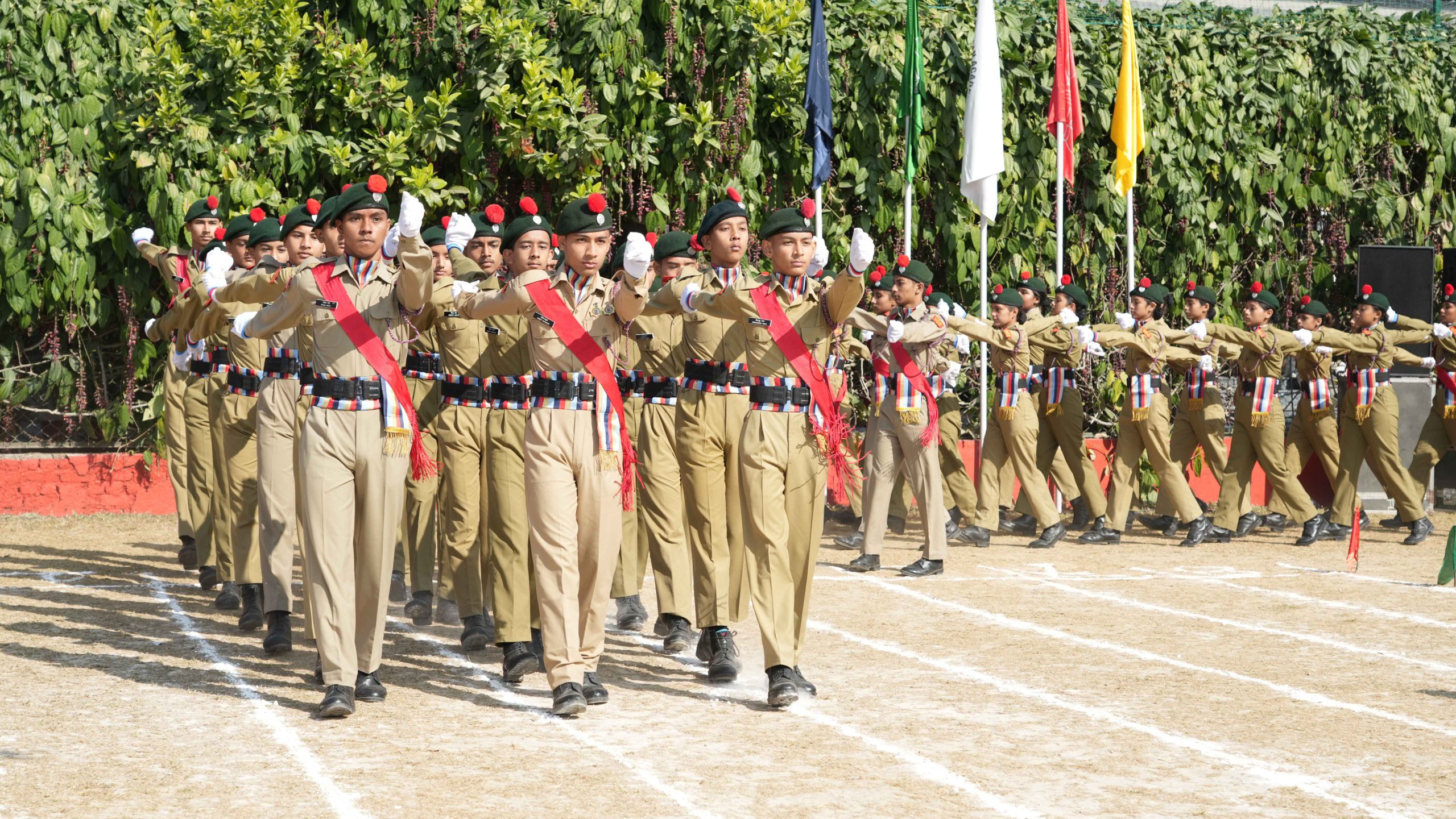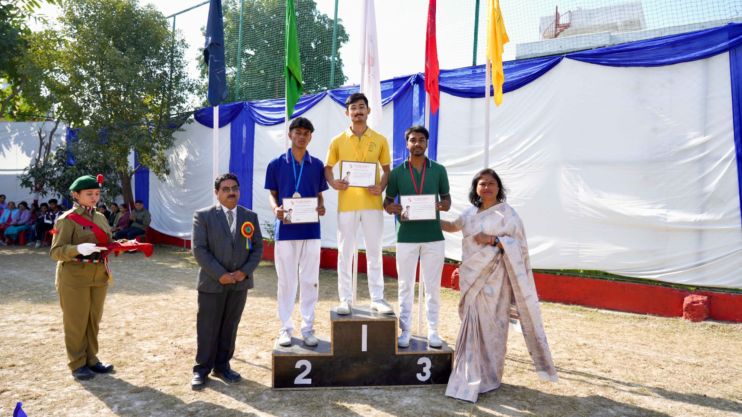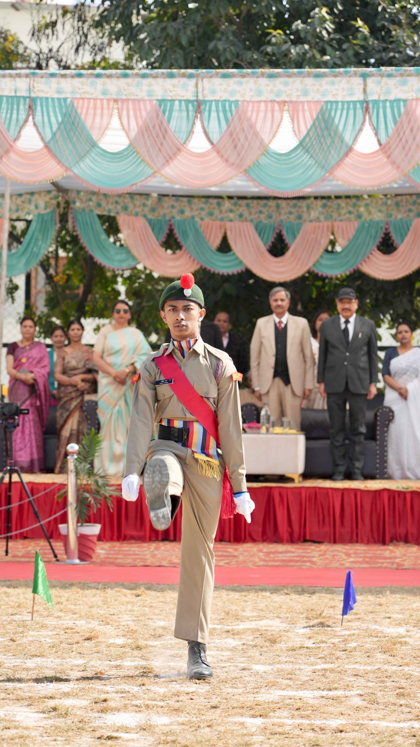 Following formal introductions, the event was declared open with a balloon-release ceremony and a disciplined March Past by NCC cadets. Principal Mrs. Neelam Sharma presented the Annual Report 2025.