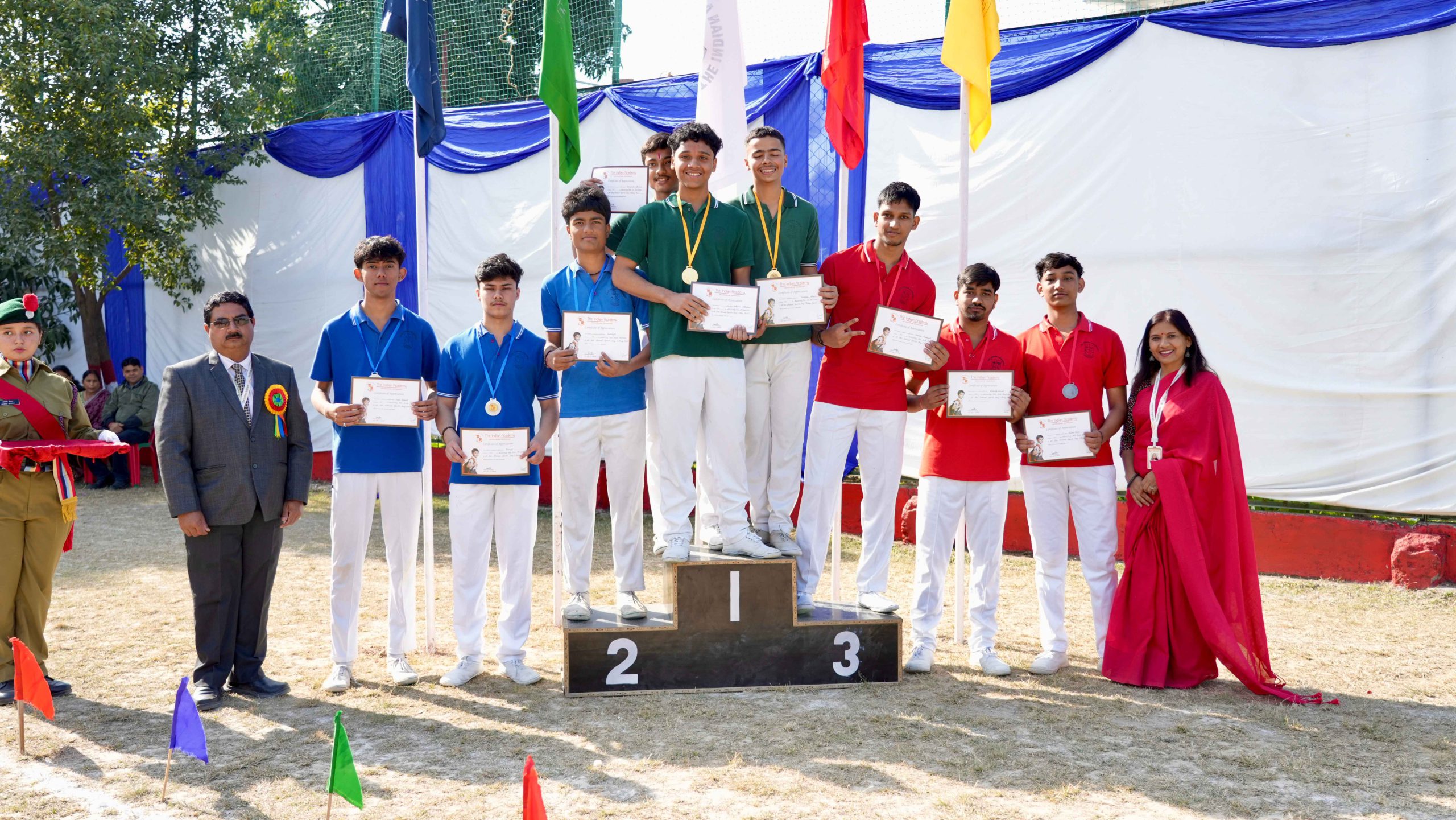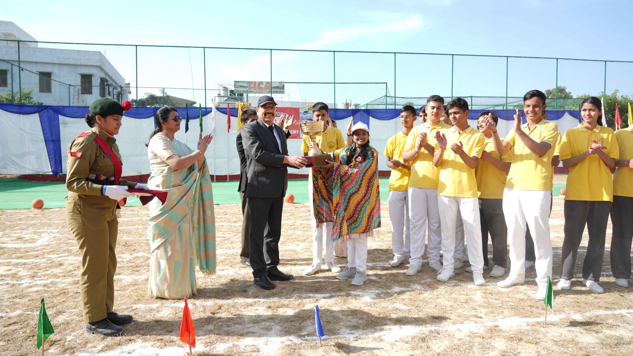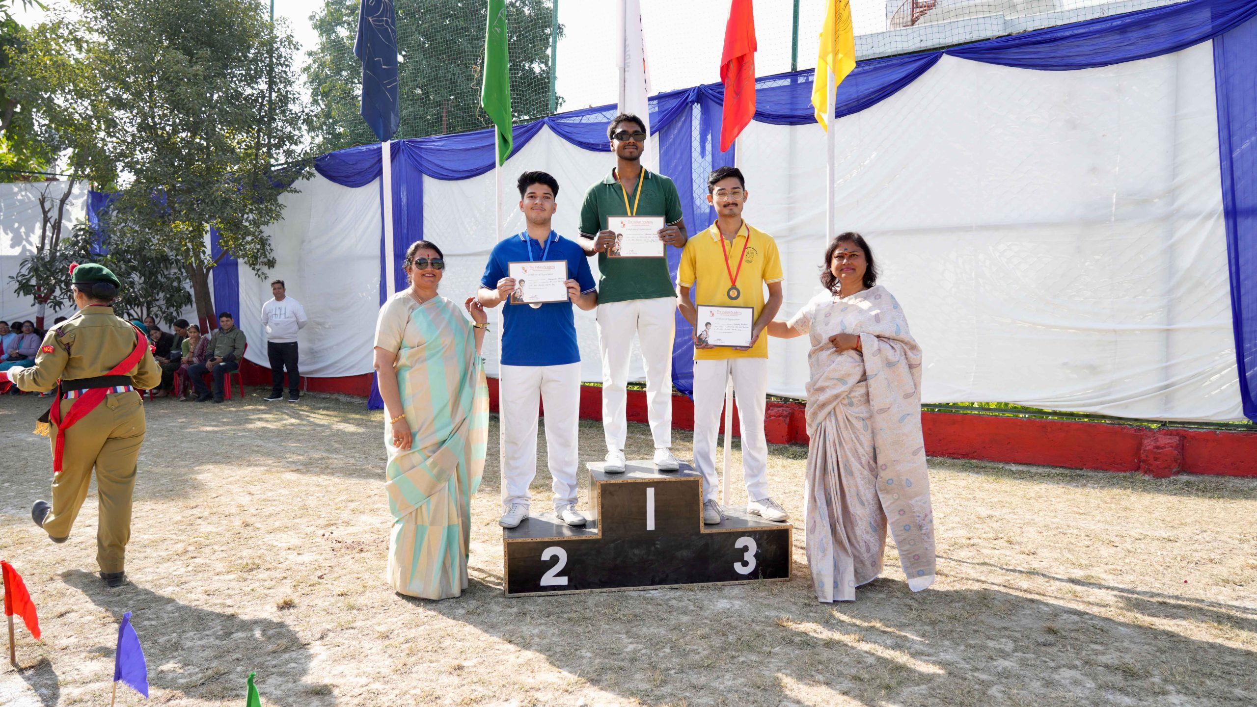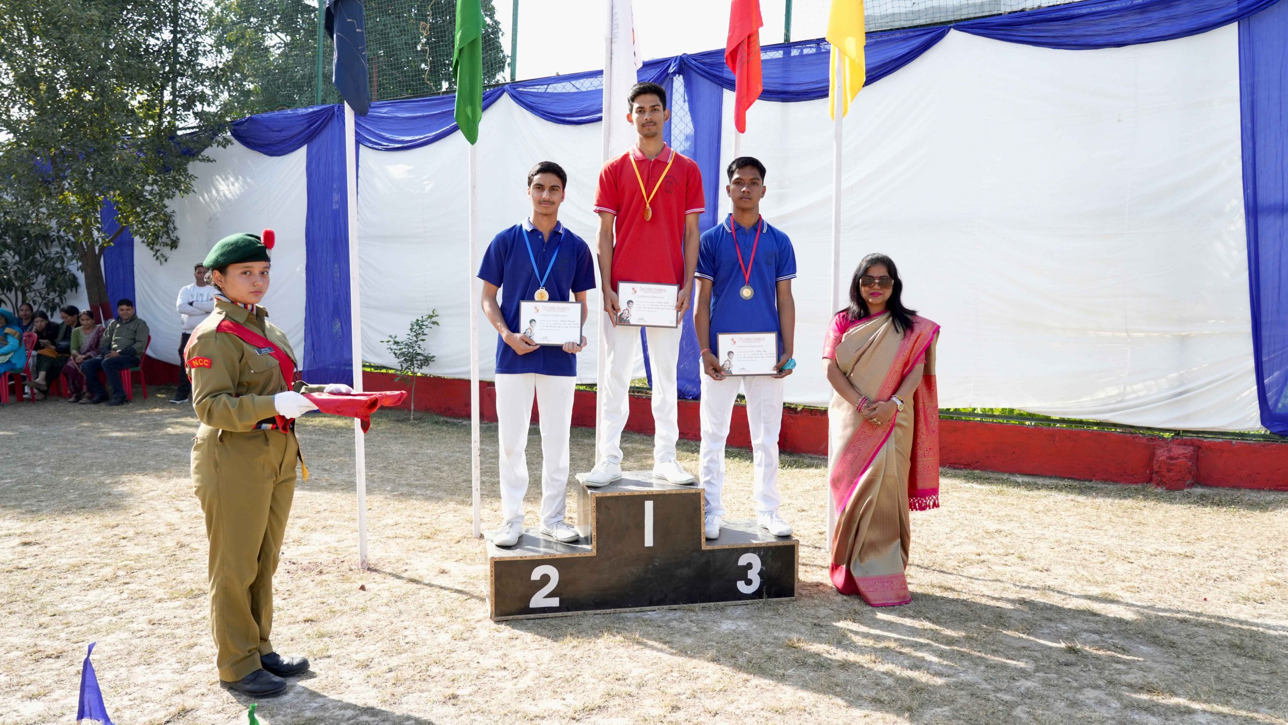 Following formal introductions, the event was declared open with a balloon-release ceremony and a disciplined March Past by NCC cadets. Principal Mrs. Neelam Sharma presented the Annual Report 2025.