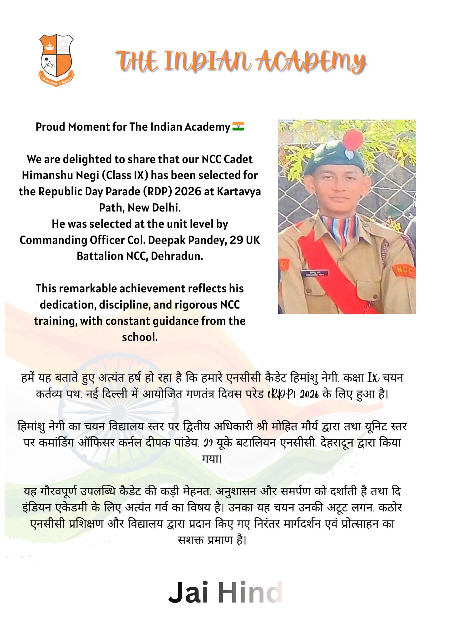Marching Towards National Honour: Himanshu Negi Selected for RDP 2026